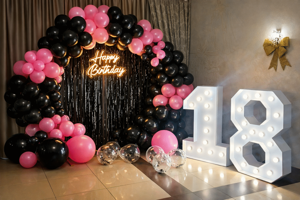 Osiemnastki i imprezy okolicznościowe – nowoczesne i kolorowe dekoracje, w tym modne ścianki balonowe, które stanowią fantastyczne tło do zdjęć i dodają uroczystości wyjątkowego blasku.